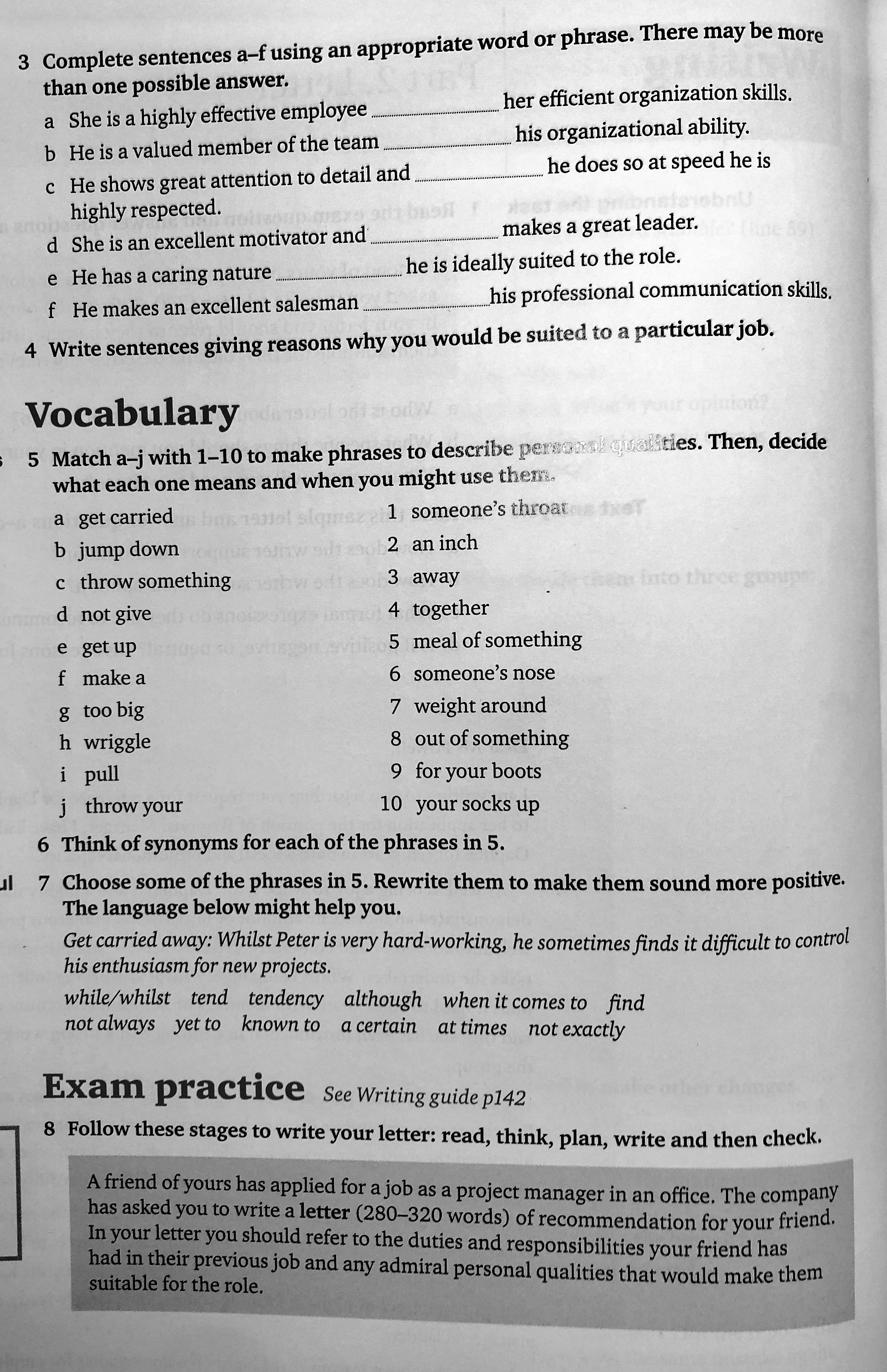 For homework, please complete the writing task (letter of recommendation) on page 100.