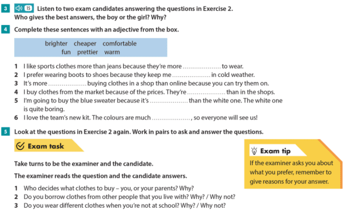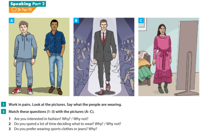 We will start by describing what people are wearing from the speaking exercise on page 29.