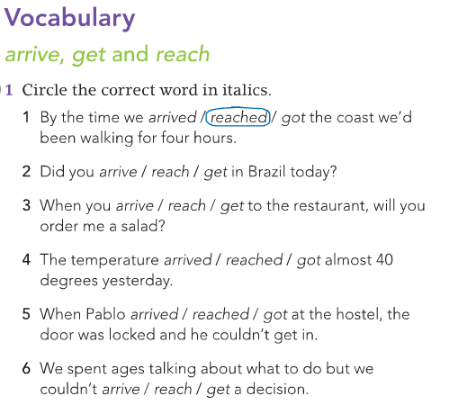 On Tuesday we will focus on vocabulary from page 110 – arrive, get and reach. We will also do listening part 4.