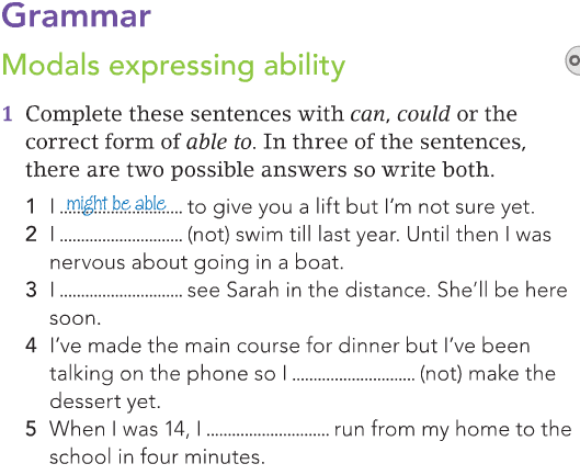 On Thursday we will revise some phrasal verbs from page 111 and modals expressing ability from pages 112 and 170.