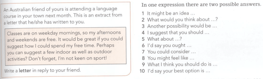 Please complete the writing task below (informal letter). The expressions will be useful when giving suggestions.