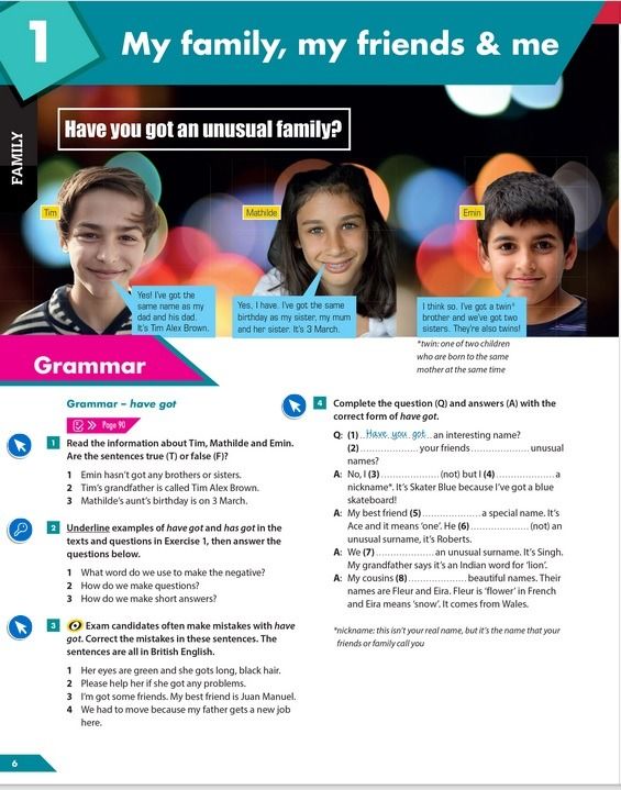 We will also revise «have got» when talking about family and do tasks 1-4 in the Student’s book