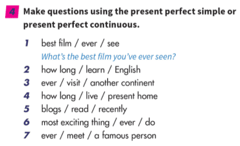 Grammar: Present perfect review. We will watch a video and answer exercise 1 on page 11.