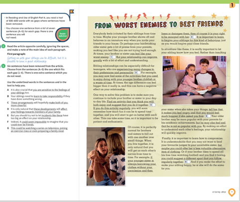 Reading homework: Complete reading/use of English activities 5 and 6 on page 10 and 11.