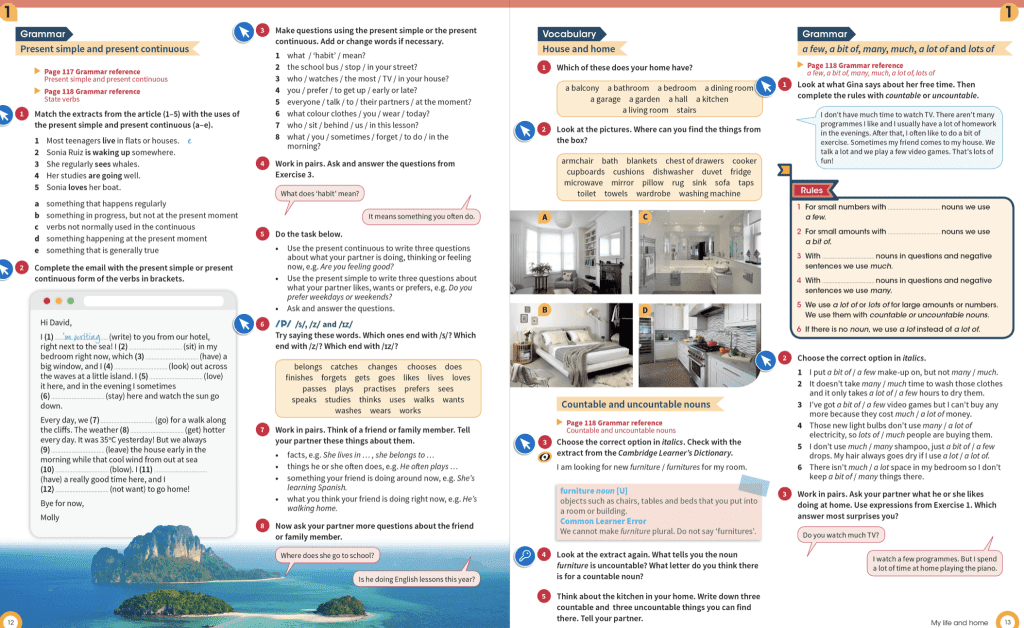 We will start today with a review of rooms of the house and furniture that can be found in each place. (Exercise 1 and 2 on page 13)