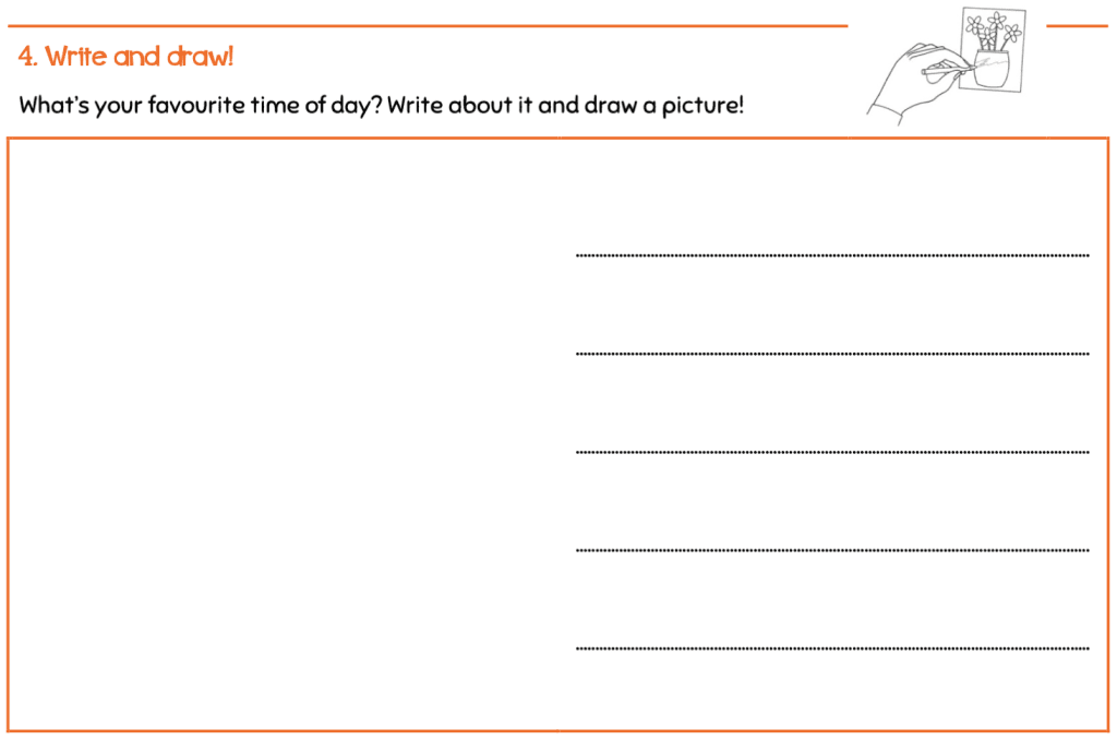 We will finish class with a drawing activity to show the class our favourite time and what we do then.