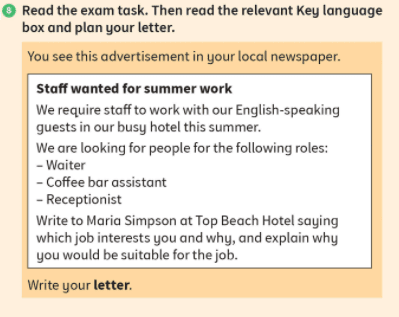 We will finish by looking at the writing part 2: email/letter on pages 204-205. We will look at a question and model answer then how to write a formal letter in exercise 7 on page 205.