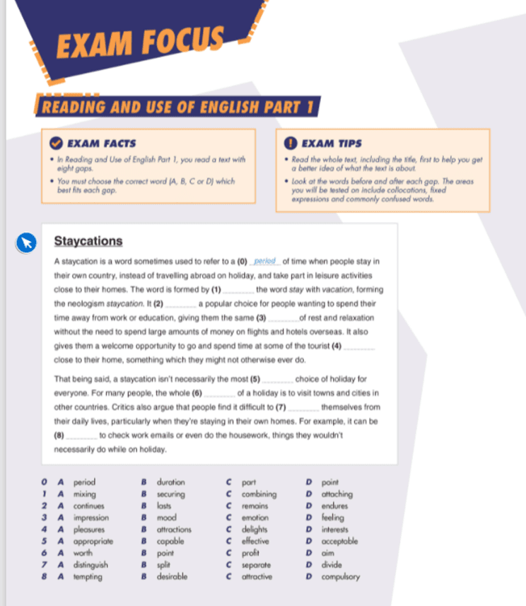 We will then have a go together at the reading and use of English exam focus task on page 64.