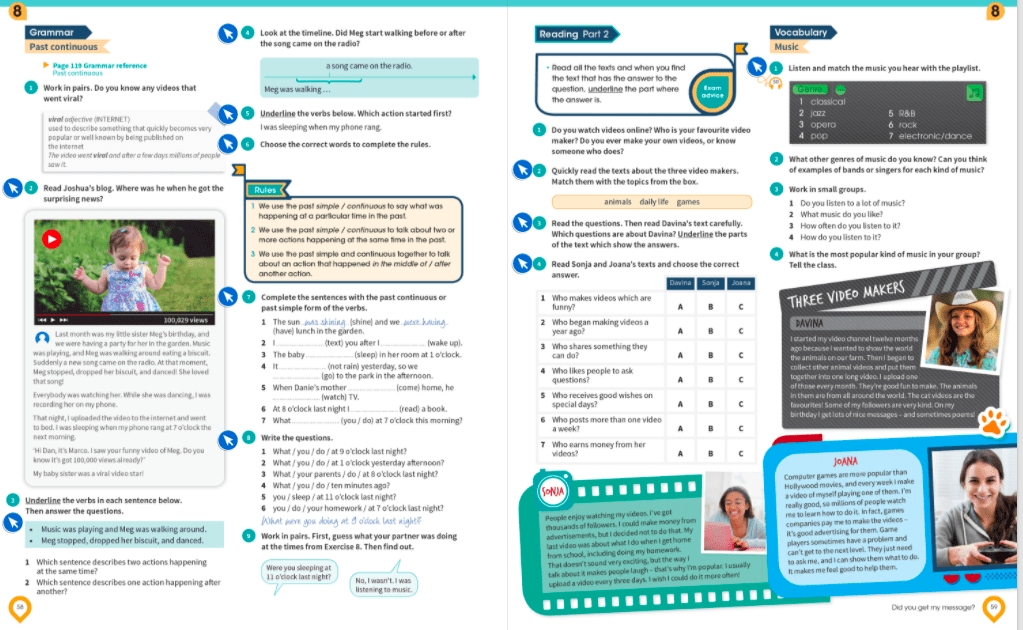 We will look at pages 58 and 59 which are about Past Continous and Reading