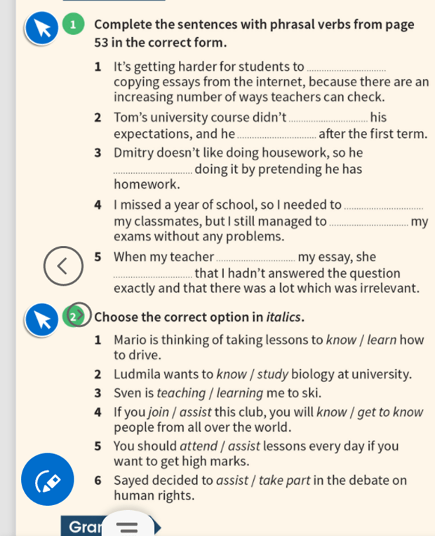 Homework: vocabulary tasks page 72.