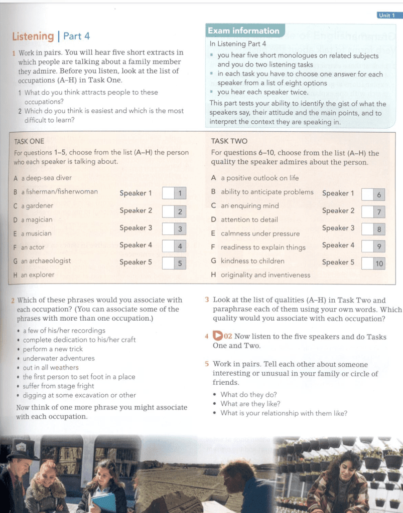 This will lead us into part 4 of the listening exam. It’s a complicated part of the exam so we will take it slowly and work through the task as a class before completing it individually.