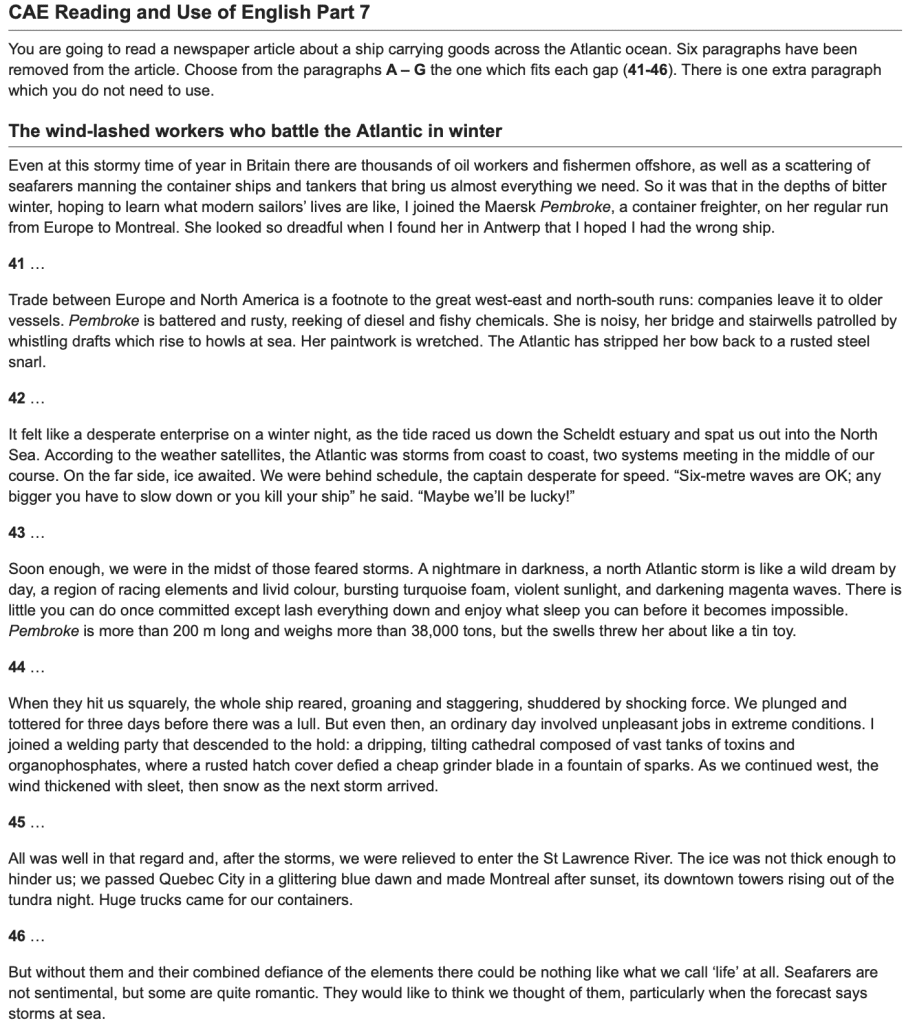 Today we will focus on exam technique. This relates to the gapped text (part 6 FCE, part 7 CAE).