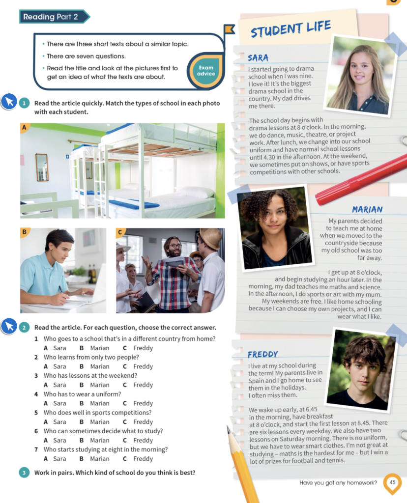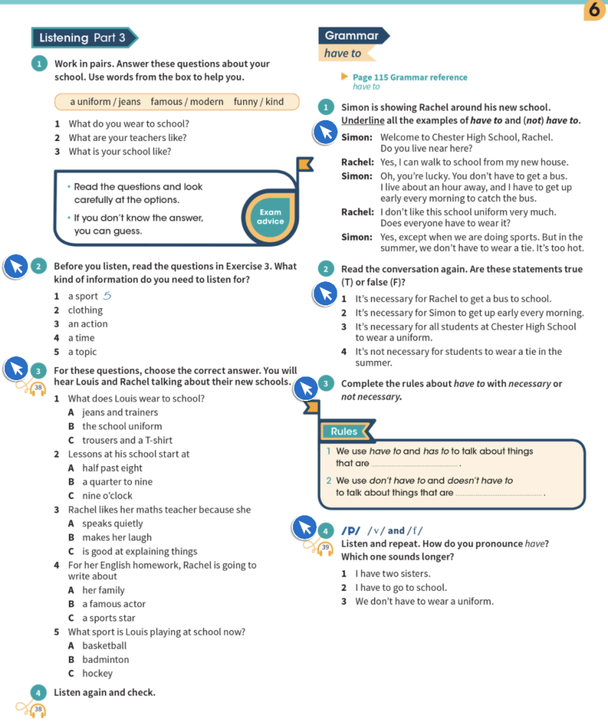 Today we will start class with conversation about school, and then complete the listening task on page 44.
