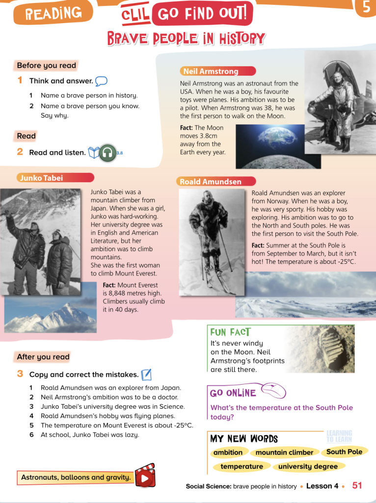 Today we will read about brave people in history on page51 and answer the comprehension questions.