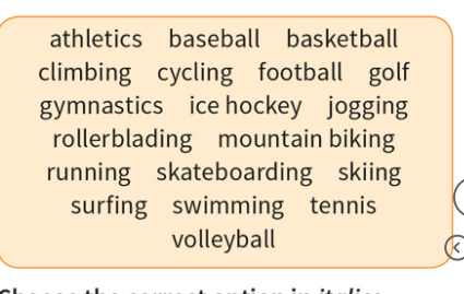 - Speaking activity to start, describing these sports, how they are done/played, using the correct verb and any equipment involved.