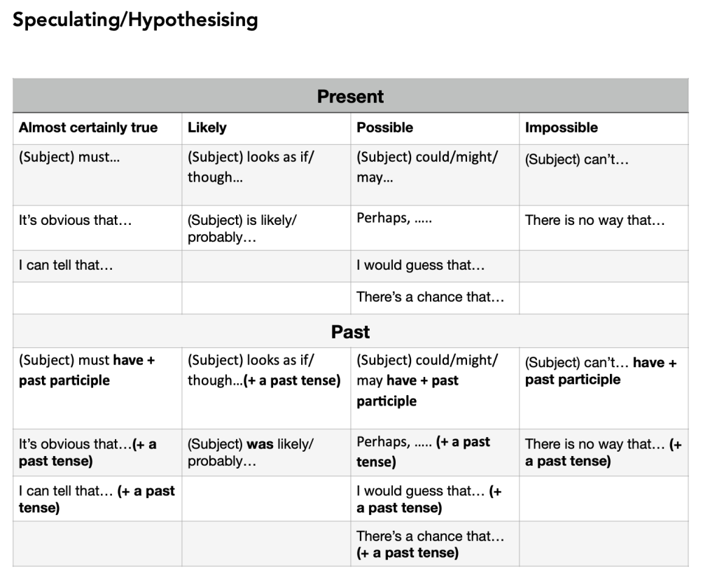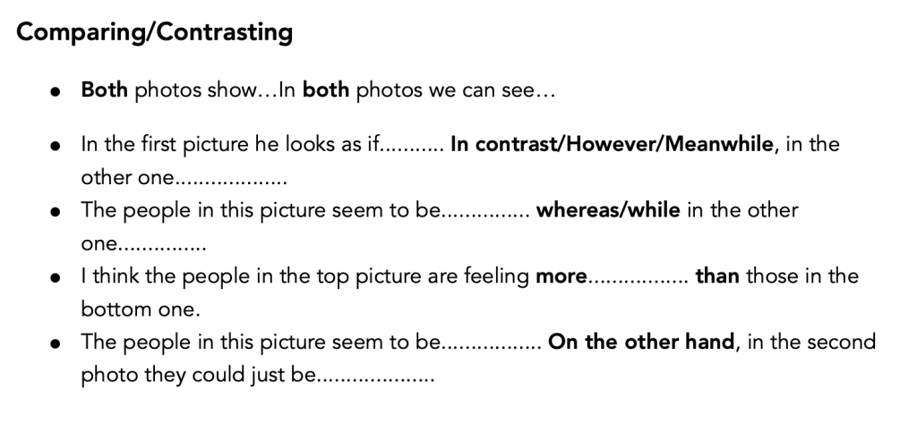 We will then turn towards the exam itself and practice speculating using photo sets provided in class.